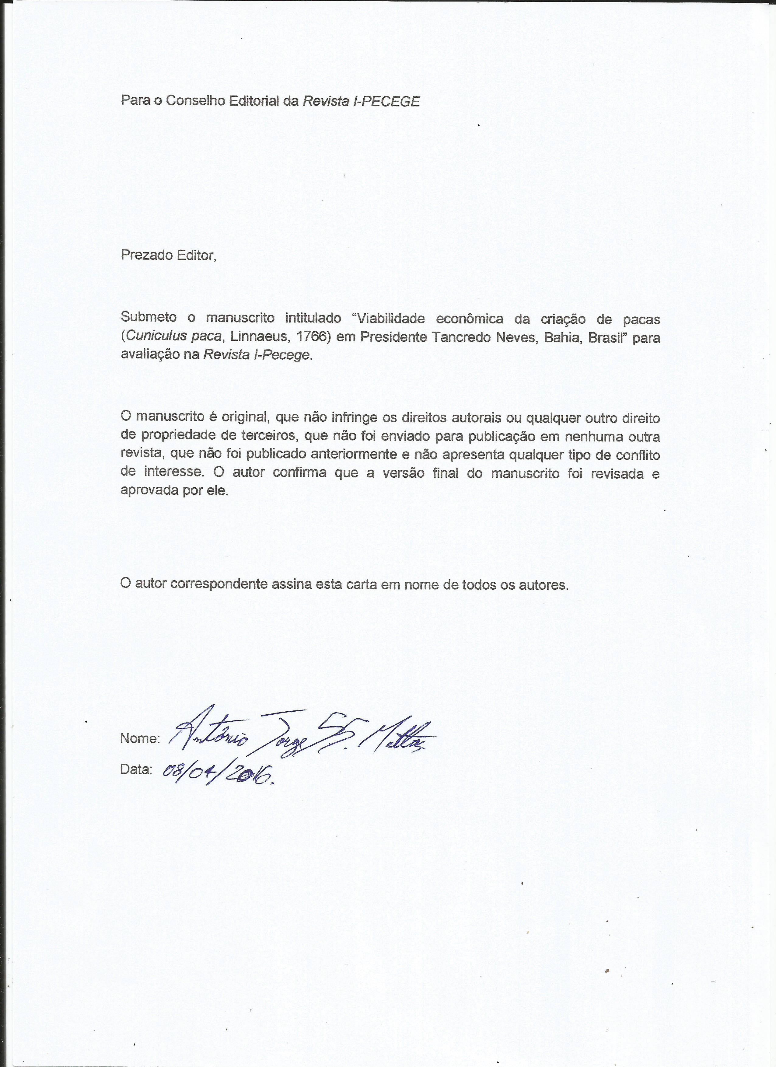 Lourenço, R.F.S.; Dias; R.S.; Gomes, A.P. 2008. A Criação de Paca (Agouti Paca) como Alternativa de Diversificação de Produção e Renda em Minas Gerais. In: XLVI Congresso da Sociedade Brasileira de Economia, Administração e Sociologia Rural, 2008, Rio Branco. Anais do XLVI Congresso da Sociedade Brasileira de Economia, Administração e Sociologia Rural.